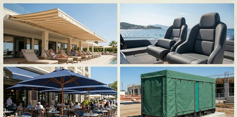 - PVC-coated textiles are best for heavy-duty, wipe-clean, and marine use.